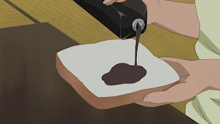 Soy sauce (again) on beard (!!! dont' you have butter or jam?)