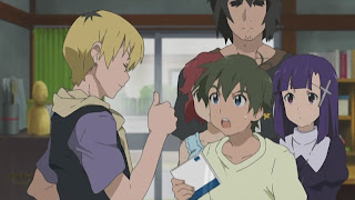 Everyone arrives and waits outside of the closet beside Akiba.