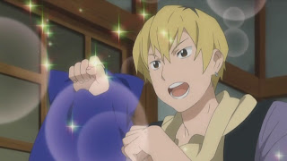 Jin and Zange pretend to have intimate behaviors next to Nagi's closet to prod her out.