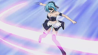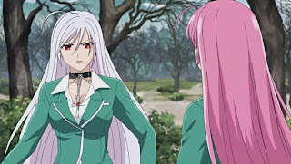 This is the first time the two Moka see each other but there's a serious side effect as Moka's power is also split into half so the inner Moka is virtually useless in this fight.