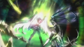 Apparently, Ikaros and Nymph aren't the only pairs fighting against each other as there's also a gunfight taking place between Tomoki and Sohara, and this one is also lopsided because Sohara's weapon is actually a real handgun.