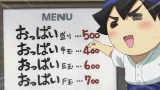 Then, Tomoki convert his shop stand into a food stall selling discriminatory okonomiyaki according to cup size and scares off all the female customers...