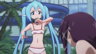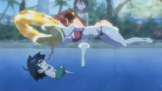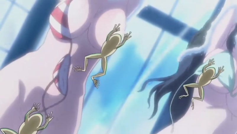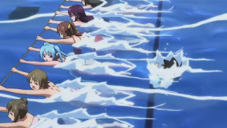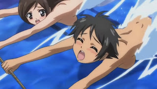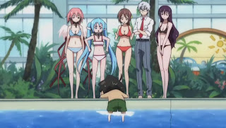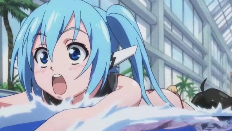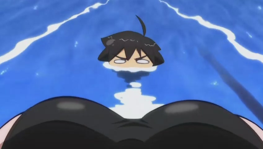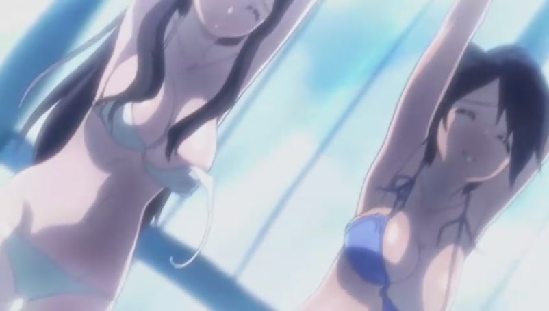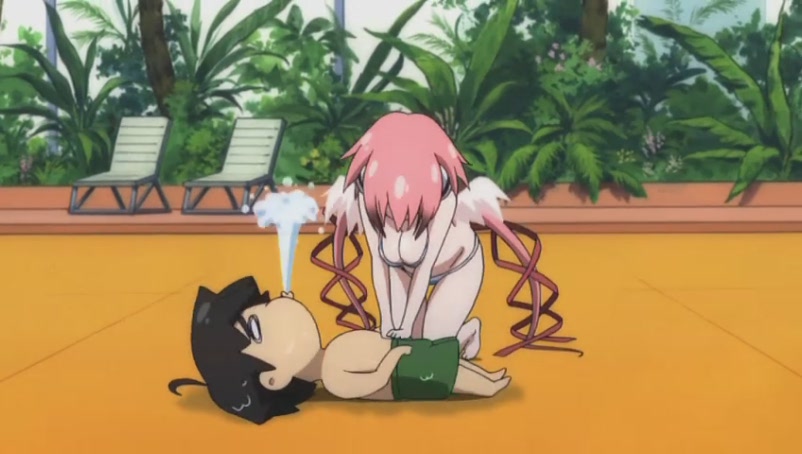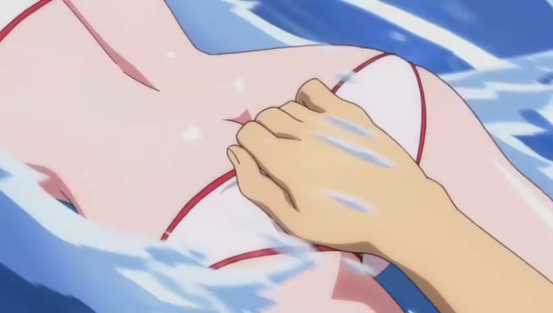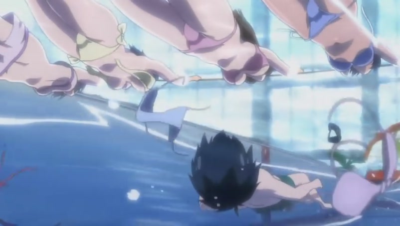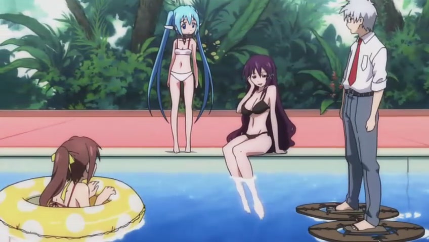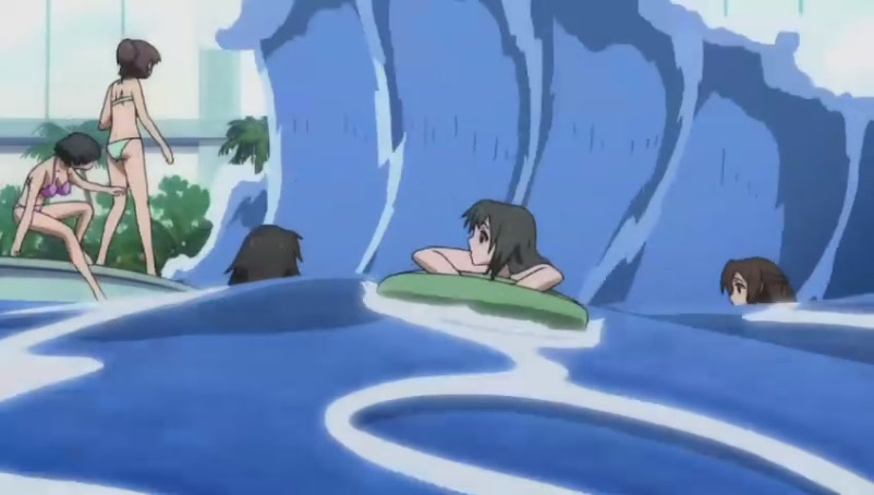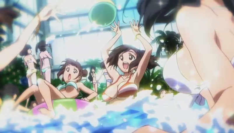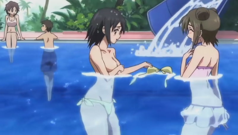 Tomoki quickly asks Ikaros to speed up the water current in the pool in hope of washing away all the bikinis@@