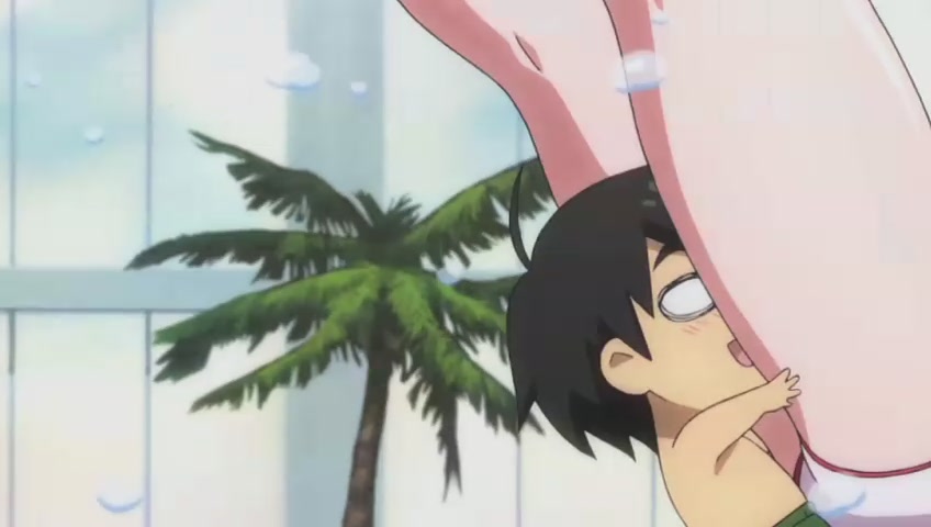 But Tomoki falls short so he holds on to Nymph's pant and harass her for the second time...