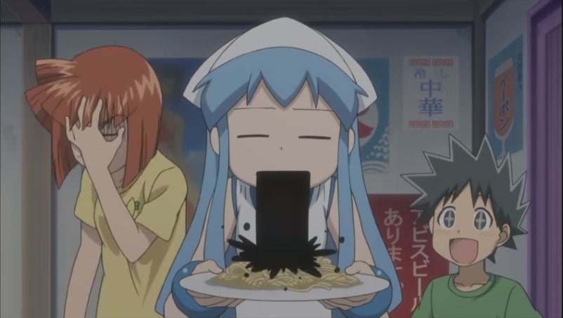 ... this is how squid ink spaghetti is made... so disgusting... and what a waster of her tentacles which could have done more things