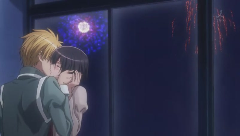 Donno why it takes so long for them to kiss... even after Usui touches Misaki's boobs... Congrats on Usui's patience as he certainly does everything he can as a perverted outerspace alien/stalker/dog to win the heart of the violence man-hater student president/maid... Anyway, their relationship progresses very slowly as they just keep fooling around, and none of them makes a serious attempt to confess his/her feelings. Meanwhile, there's really no competition throughout the season except for the late appearance of Misaki's childhood friend/transfer/gluttony/dog (a newcomer to join the dog fighting...) who doesn't seem to be a big threat at all. To me, it hurts to see the deteriorating quality of the anime in the second half of the season as we have a floating ghost in the sky and the three idiots completely lose their human forms in the maid cafe... Also, the ED does hint a little bit of Usui's dark past which the main story never reveals perhaps because nobody wants to ruin the lighthearted romantic comedy genre?